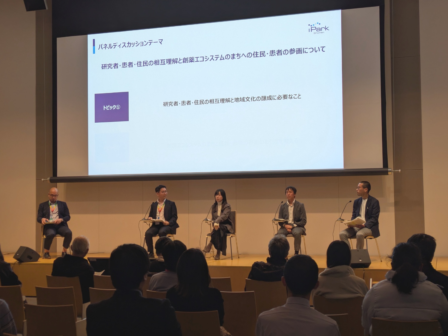 登壇者全員によるシンポジウムでは、研究者にとって患者や住民との日常生活的な話し合いこそが、研究における新しい発見につながるとの見解が示されました。研究者が抱える課題に対して、患者の生活の視点から新しい解決策やヒントが得られる可能性があり、地域のネットワークを密接にすることで、その機会を日常的に持てるようにすることが、新しい薬の種を生み出す鍵になると締めくくられました。
