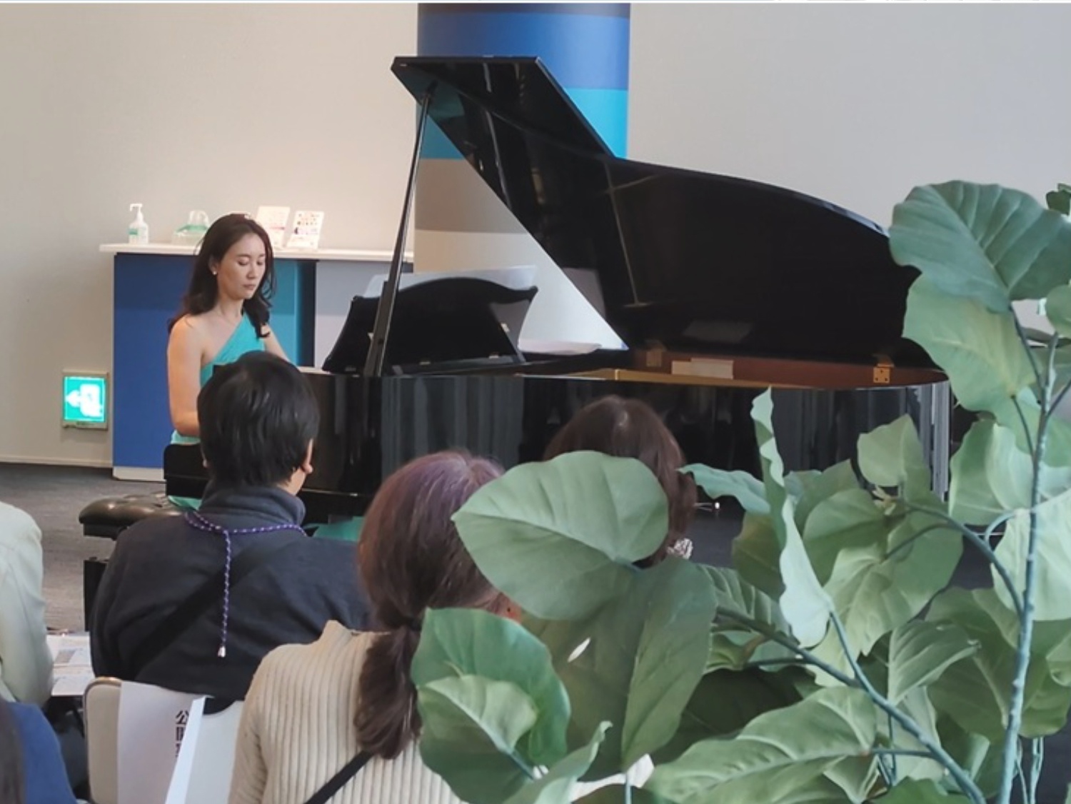 夕刻、イベント終盤には、「音でととのうウェルビーイング」音楽療法体験会も開かれ、専門家による講義とともに、ピアニストの小林有沙さんによるピアノ生演奏が行われ、美麗な音色の余韻とともにイベントは締めくくられました。